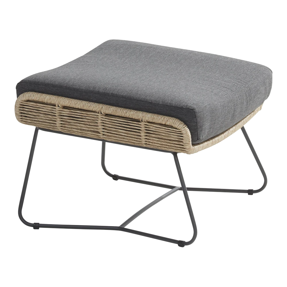 De Taste by 4 Seasons Outdoor Belmond Voetenbank is ideaal voor extra comfort bij de Belmond loungeset of Belmond loungestoel! De Belmond voetbank is gemaakt van RVS in de kleur antraciet met een naturel kleurig wicker afwerking. Deze voetenbank leveren wij inclusief gevuld kussen, het kussen is afritsbaar waardoor ze eenvoudig koud te wassen zijn. De kussens zijn gemaakt van hoogwaardige kwaliteit, waardoor ze het gehele seizoen buiten kunnen liggen. Ook is deze Belmond voetbank goed te combineren met de tuinmeubel loungeset en/of loungestoel van Belmond.