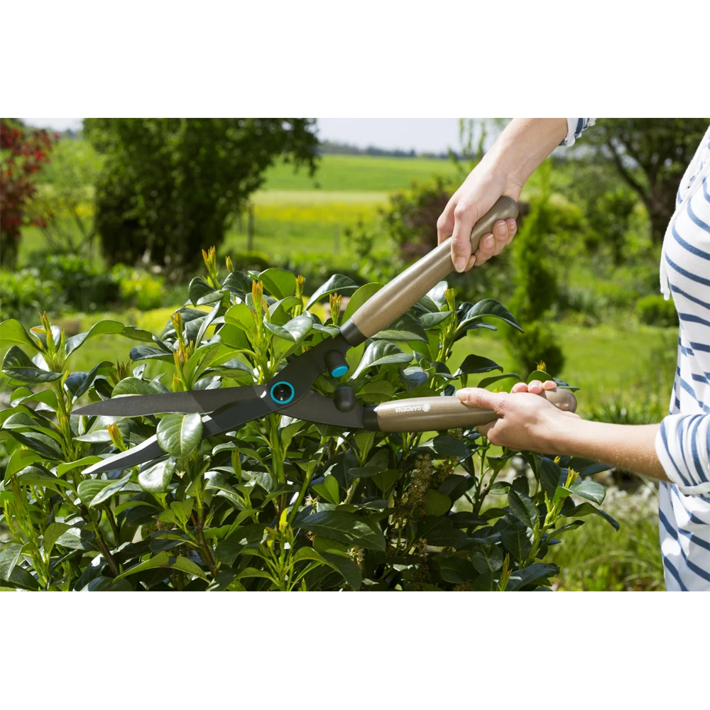 De GARDENA NatureCut is een uitgebalanceerde allround heggenschaar is een echte alleskunner en duidelijk herkenbaar aan zijn twee houten handgrepen. De handgrepen zijn 100% FSC-gecertificeerd en stralen een rustieke charme uit, wat dit populaire model duidelijk onderscheidt van andere heggenscharen. Met de NatureCut weet je zeker dat de functionaliteit niet ten koste gaat van het geweldige ontwerp. De fabrieksgarantie van 25 jaar is het bewijs van een kwalitatief, duurzaam product. De scherpe, getande messen zorgen ervoor dat elke snede telt. Dit type mes zorgt ervoor dat altijd hoge prestaties worden bereikt, zelfs bij het snoeien van grote oppervlakken. De ErgoTec handgrepen zijn rond, symmetrisch en ergonomisch gevormd – zodat de schaar altijd comfortabel in uw handen ligt tijdens het snoeien. De zachte buffer is bijzonder praktisch, biedt geweldige demping, lage weerstand en maakt uw werk eenvoudiger. Hierdoor kunt u langer in de tuin werken zonder moe te worden – ongeacht of u een heg, struik of buxus snoeit. Takken snoeien gaat eenvoudig met de ingebouwde taksnijder. Dankzij de werkhoek van 20 ° worden de handen tijdens het werken altijd op veilige afstand van de heg gehouden, waardoor uw handen niet worden bekrast. De NatureCut is een echte alleskunner die altijd geweldige resultaten levert.