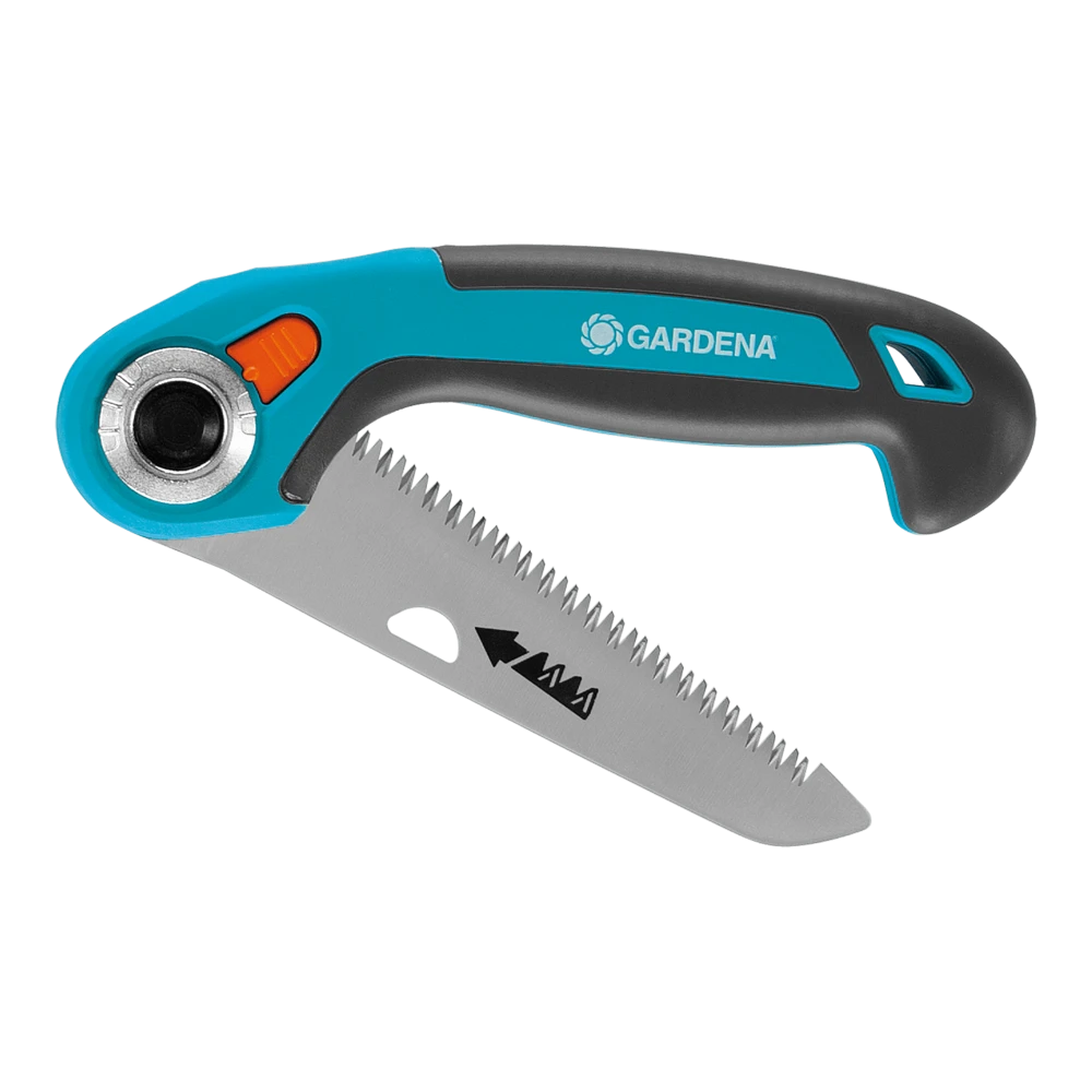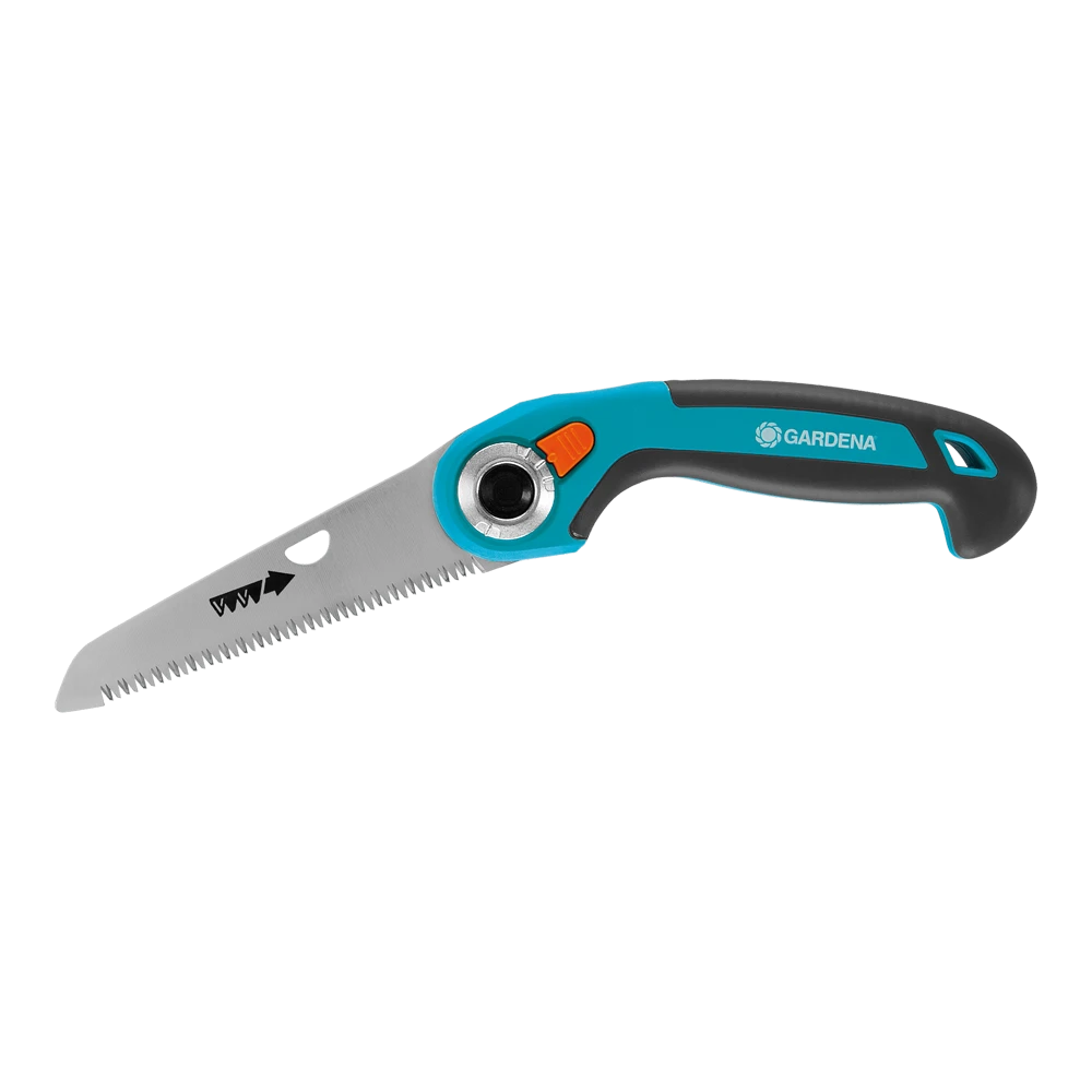 De inklapbare snoeizaag 135 P behoort tot de nieuwe generatie GARDENA zagen. Deze zaag heeft een totale lengte van 135 mm, en is daardoor een eenvoudig te gebruiken allrounder voor het afzagen van dikkere takken. Ideaal voor alle kleinere zaagklussen in de tuin en voor outdoor activiteiten. Lichtgewicht en effectief. Het hard verchroomde zaagblad heeft impulsgeharde 3-zijdig geslepen precisie zaagtanden, wat zorgt voor snelle resultaten met weinig krachtinspanning en een bijzonder nauwkeurige zaagsnede. Inkerven is aanzienlijk vereenvoudigt. Roest krijgt geen kans. U kunt deze zaag meenemen in de tuin, door deze veilig ingeklapt en vergrendeld in uw broekzak, of aan uw riem hangen. Als u de zaag nodig hebt, klapt u deze gewoon weer open. Met de vergrendelknop kunt u het zaagblad in drie bladstanden vastzetten. Na gebruik, klapt u de zaag weer dicht. Het zaagblad verdwijnt veilig in het fraai vormgegeven handvat. Tijdens het zagen, beschermt een stop op het uiteinde van het handvat uw hand tegen wegglijden. Dit is bijzonder nuttig gebleken bij trekkende bewegingen en ondersteunt u bij een soepel verloop. Dankzij de ergonomische vormgeving, het iets hoekige handvat met softgrip componenten, ligt deze zaag comfortabel en veilig in uw hand. De zaag kan veilig worden opgeruimd op een handige plaats door deze aan het ophangoogje op te hangen.