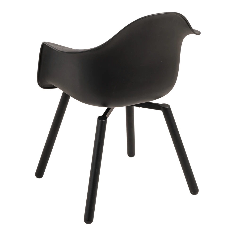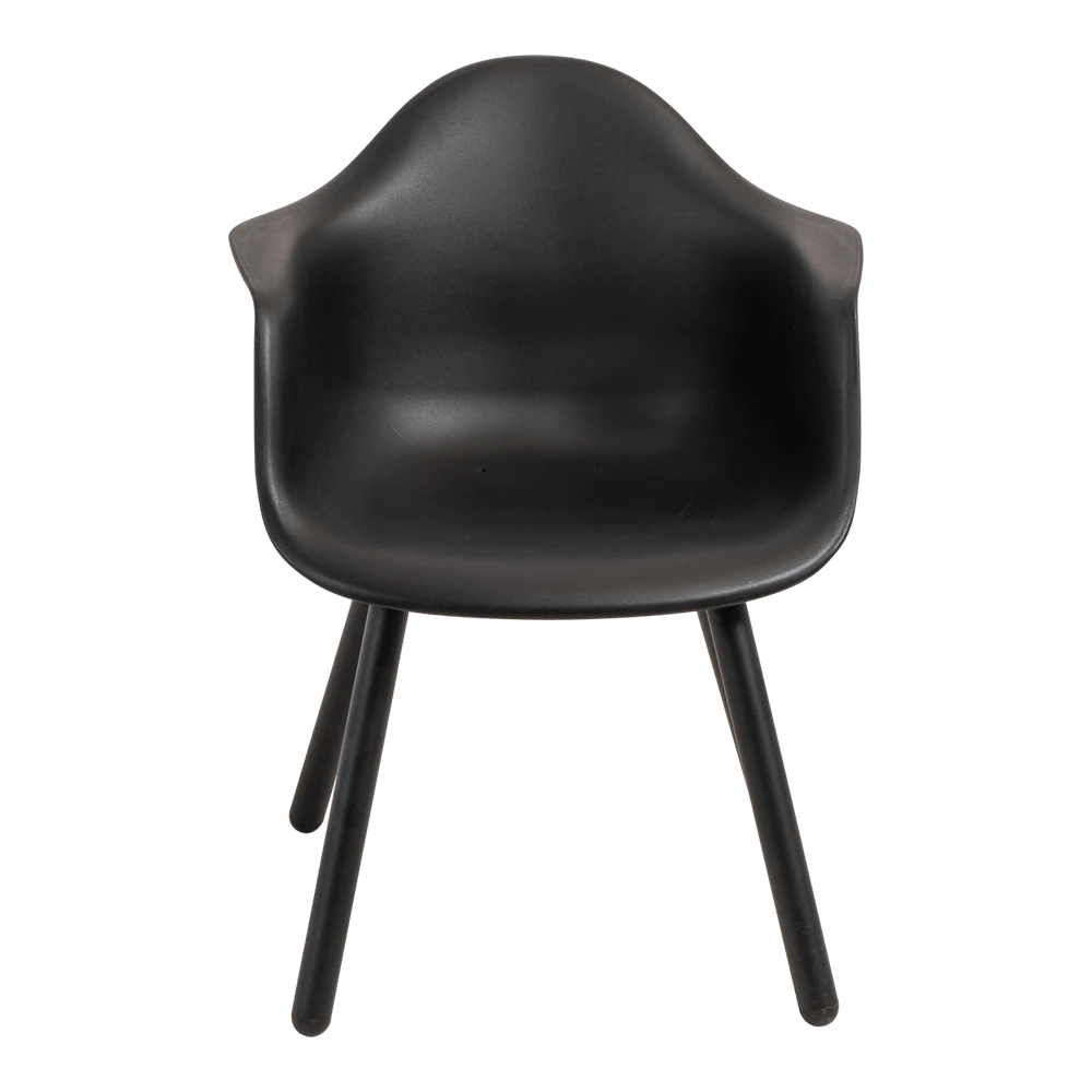 Het onderstel van de stoel heeft een zwarte coating, maar is vervaardigd uit aluminium. Hierdoor staat het niet alleen mooi, maar is de stoel ook onderhoudsvriendelijk! Het zitgedeelte is gemaakt van kunststof en bevat gaatjes voor de afvoer van (regen)water. Kunststof is sterk, onderhoudsarm en licht in gewicht. Beide materialen zijn zeer geschikt voor buiten.